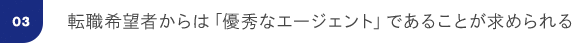 転職希望者に対する転職エージェントの役割は、「スポーツエージェント」の仕事に似ています。選手により活躍できる場を与え、選手に代わって条件交渉などを行うのが、スポーツエージェントの仕事です。ポジションや年収といったデジタル面のマッチングだけではなく、チームカラーやチームメイトとうまくやっていけるかどうかも、大切な条件になります。